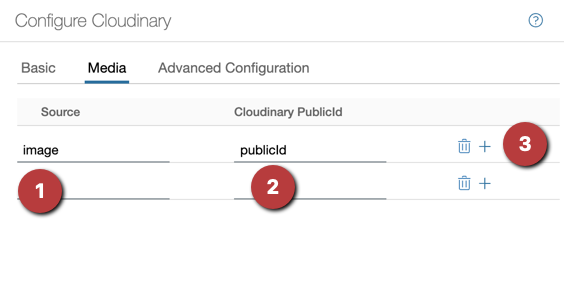 - Control buttons to create/remove pairs of publicId/image in case the catalog contains more picture columns.