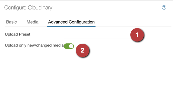 Upload Presetthe name of the upload presets from cloudinary, leave empty if no preset has to be used. -